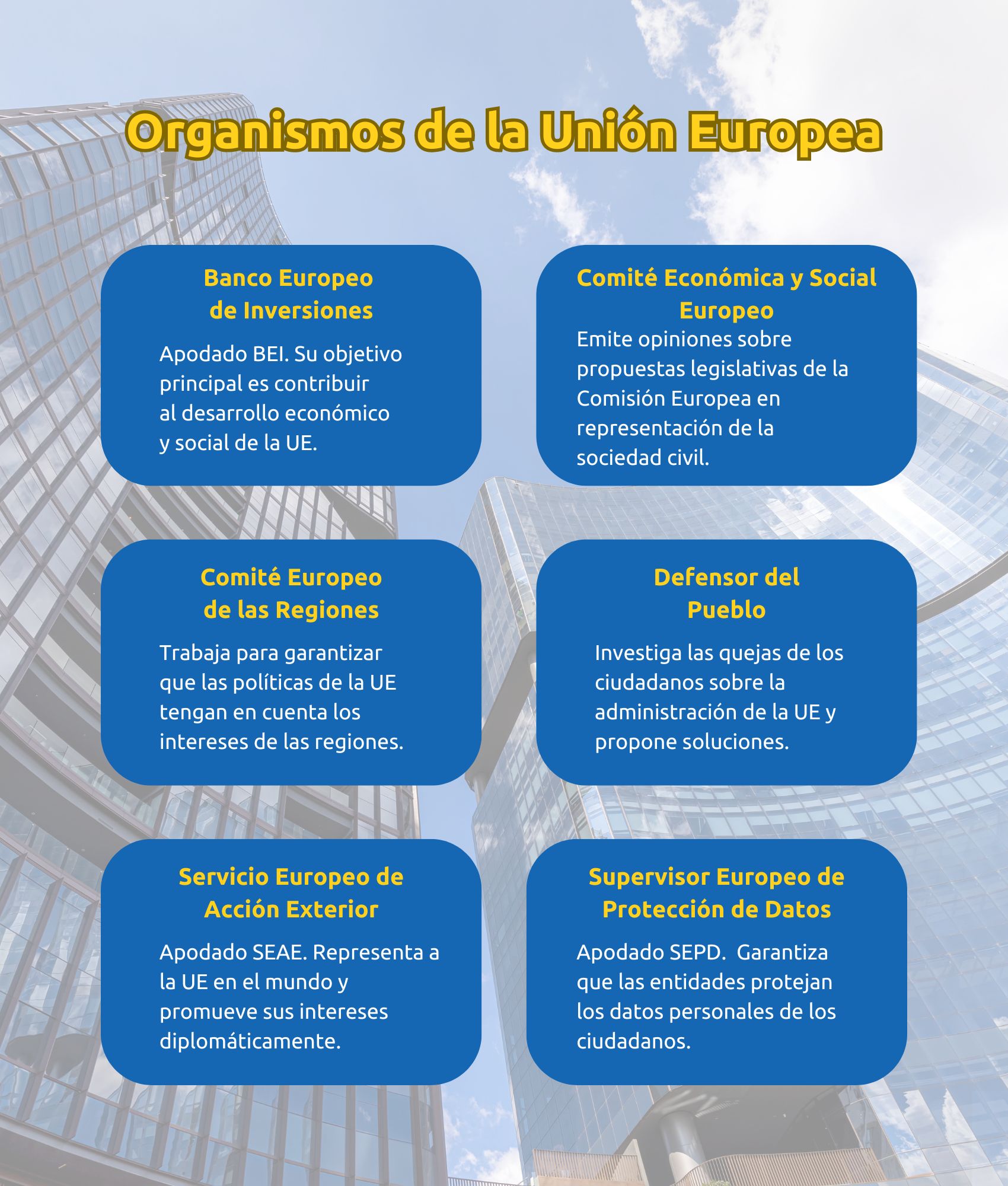 Te dejamos un esquema de los organismos de la UE que puedes descargarte haciendo clic derecho:
